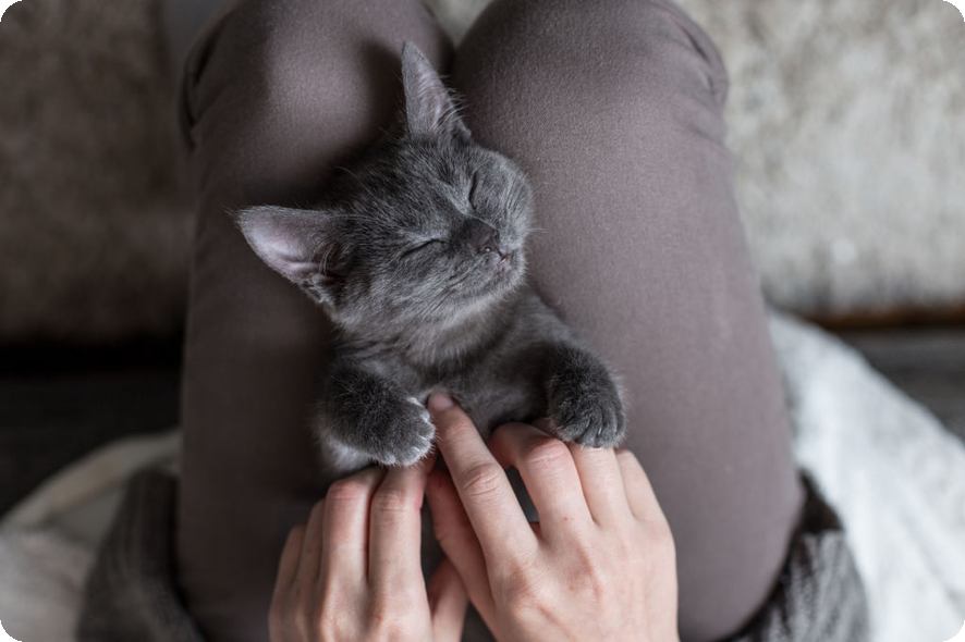 - 고양이의 배를 부드럽게 쓰다듬으며 편안한 분위기를 조성합니다.
